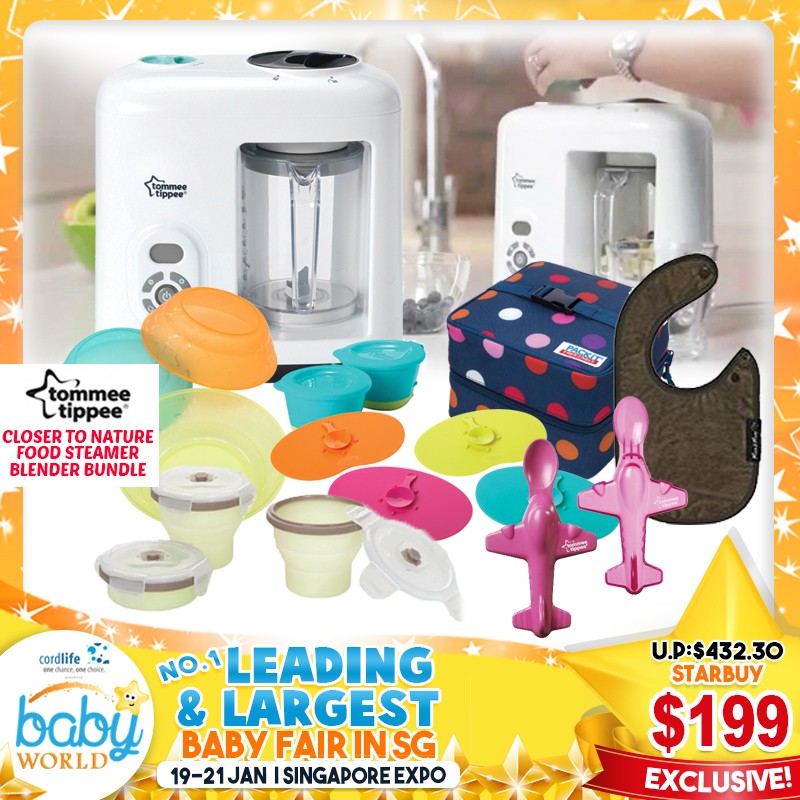 The Amazing Weaning Bundle for your Baby at Our Baby Fair! Tommee Tippee Food Blender + LOTS of FREE Gifts! . This Tommee Tippee baby food blender let you steams fruit, vegetables and meat preserving nutrients and flavour! . Every moment you spend with your baby is very precious, this wonderful baby food steamer blender makes it so easy for you to ...